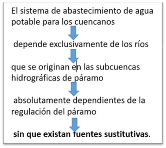 A eso se debe a que los ríos de páramo son muy vulnerables a la contaminación, especialmente de la minería. Al entrar un contaminante de forma accidental o permanente, en cualquier punto de la cuenca hidrográfica, sería prontamente arrastrado a los puntos de captación de agua.